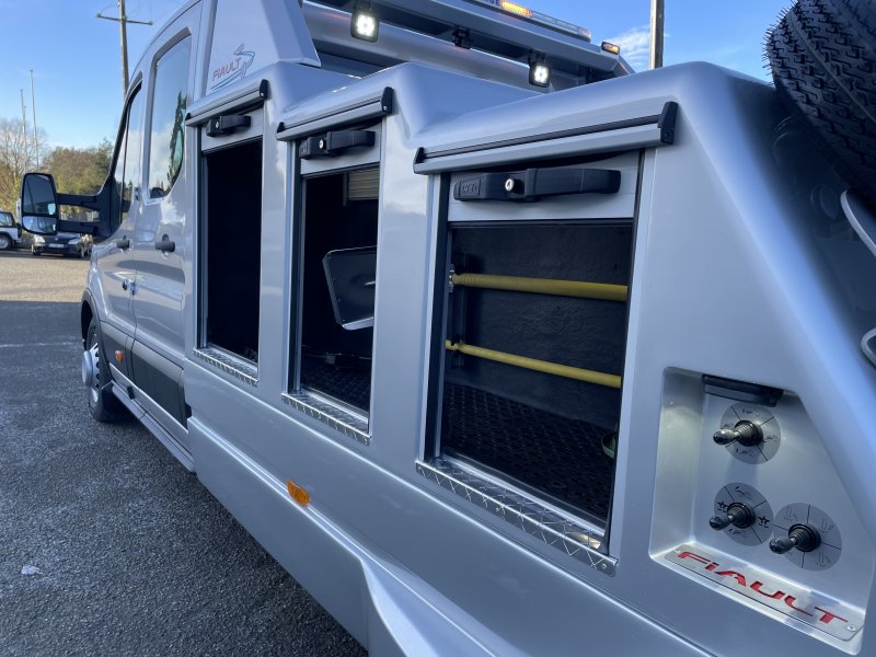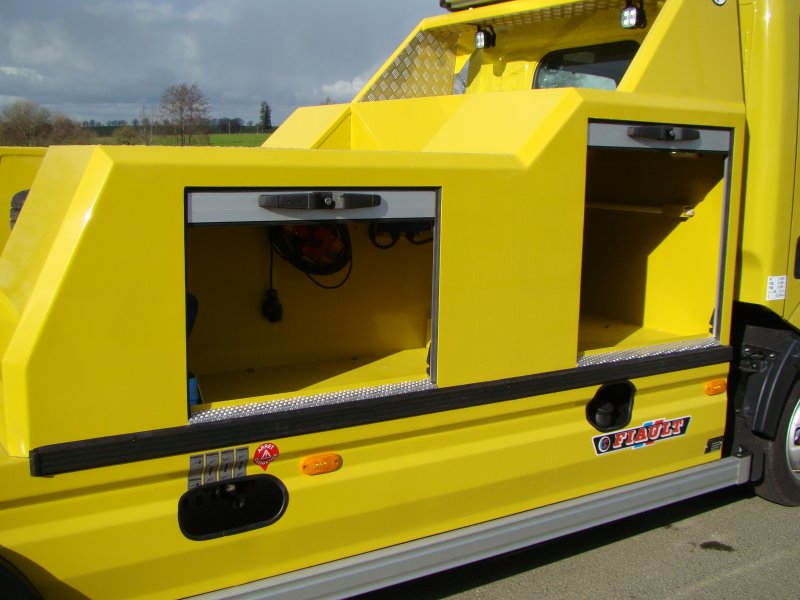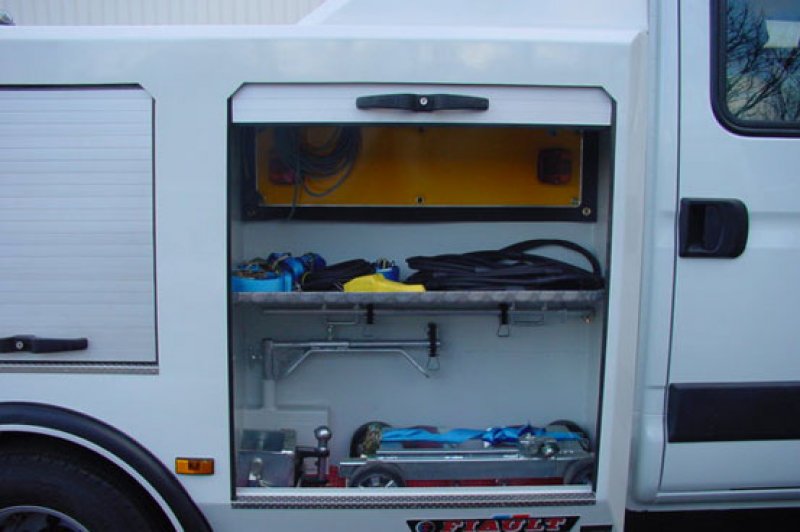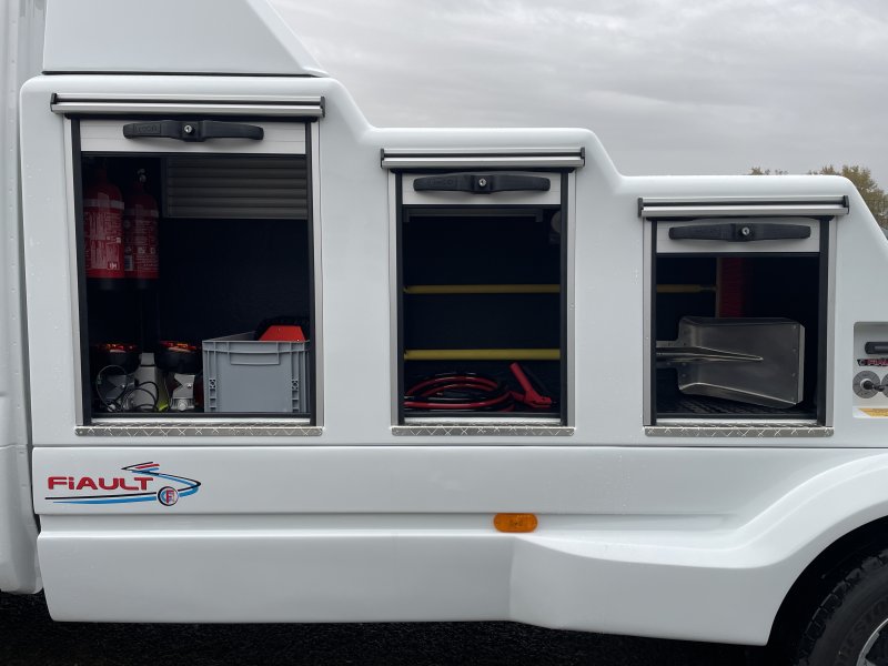 -Assistance style bodywork entirely in aluminium with standard size roller shutter cabinets on either side. 4 shutters also in aluminium (2 per side)