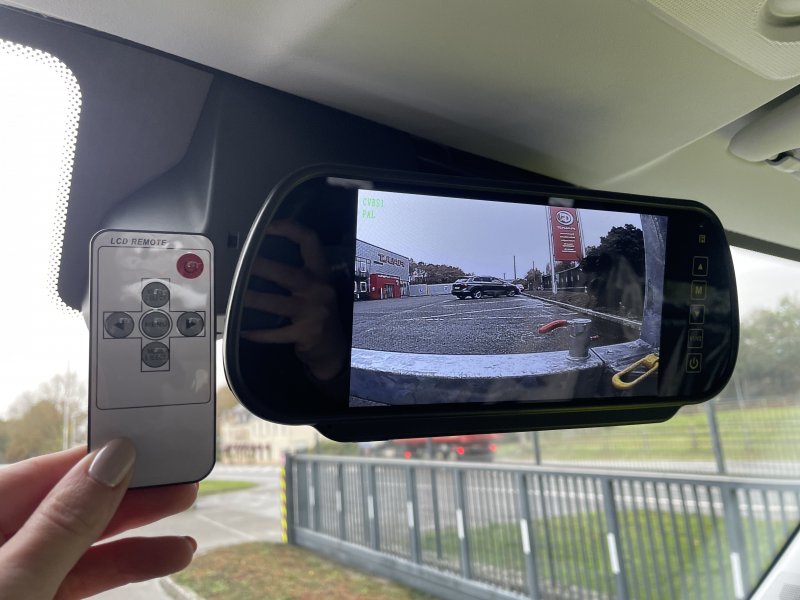 Rear view camera in color fitted on the rear of the equipment with flat screen positioned on the central mirror in the cabin (works even in driving)