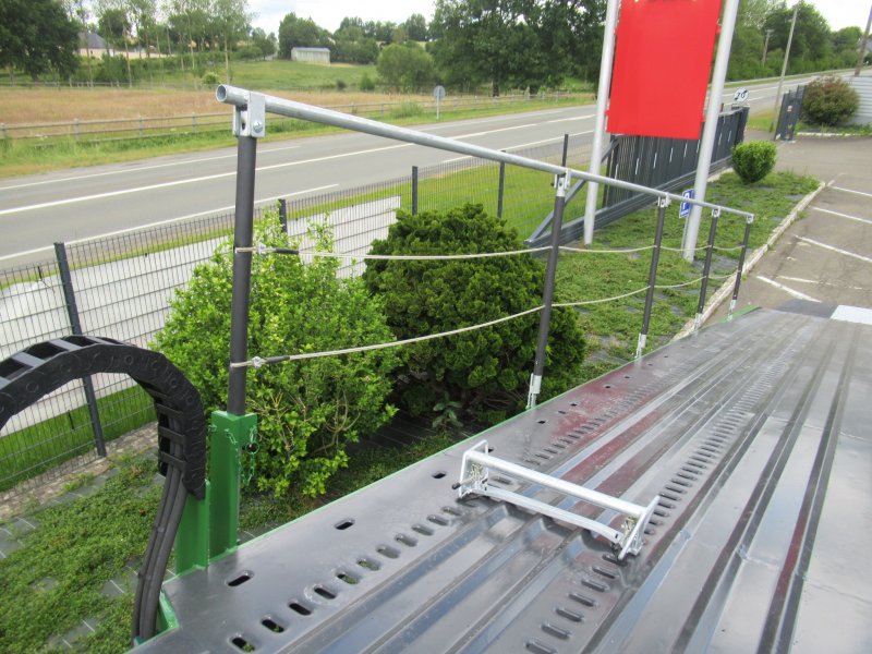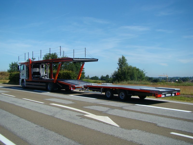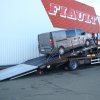 A 2 tons SCC type “AUTOLIFT” galvanised with hydraulic elevation and extension 1200 mm, removeable and adjustable galvanised lift forks, two rollers mounted under the deck, hitch ball diam. 50, two ratchet type straps to secure wheels to the deck