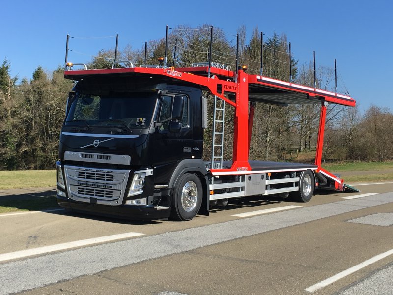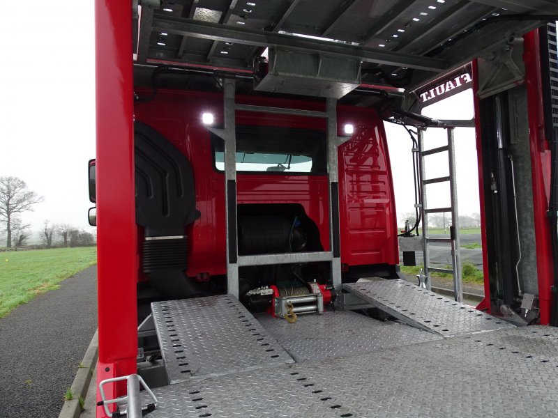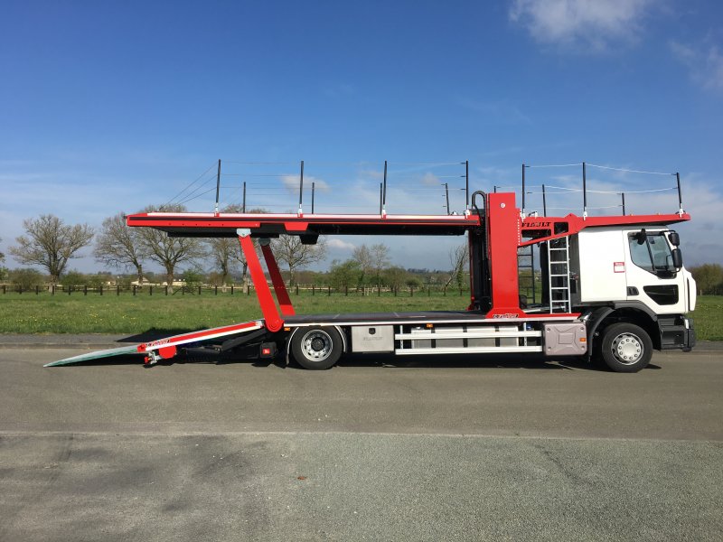 PLAT'FIX 2+3 CAR TRANSPORTER (DAMAGED VEHICLES, HYDRAULIC RAMP, SWIVELLING REAR RAMP
