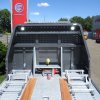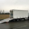 Hydraulically and articulated rear overhang platform and adjustable in height from the ground up to 20 ° above the horizontal level with a fully hydraulic loading ramp