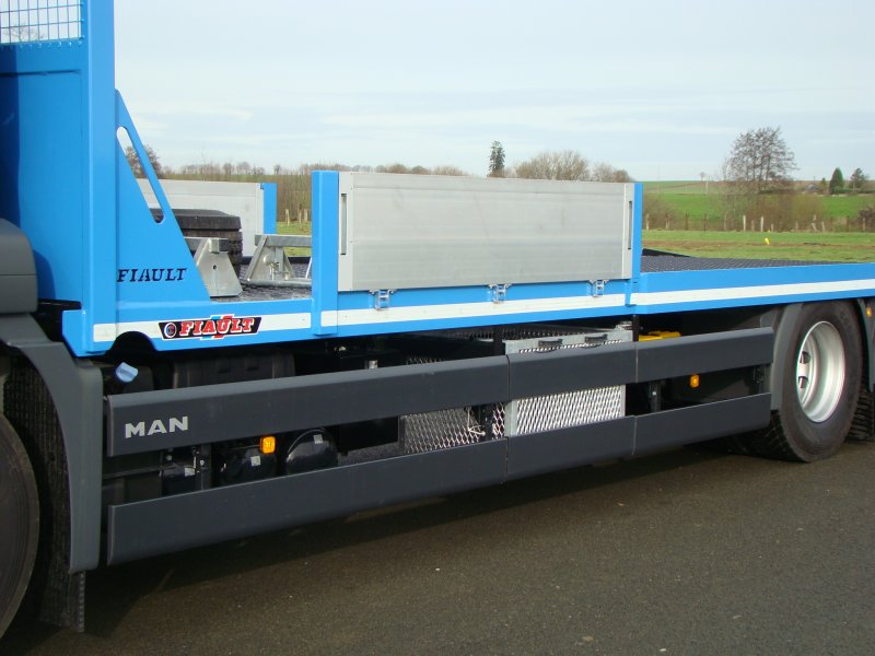 Replacing the sheet steel anti-slip load bed with perforations for fixing blocks by a mixed 3 steel strips + 2 wood floor strips of 215x35 with the possibility of stretching over the entire length and over the entire width
