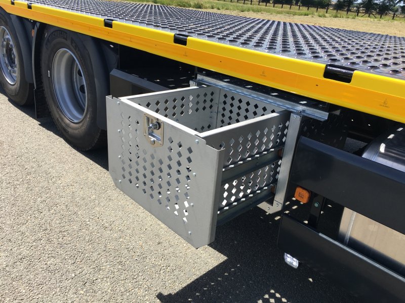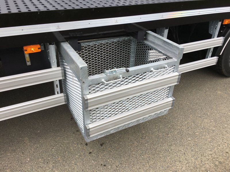-Sheet steel anti-slip load bed with perforations for fixing blocks, braces etc.