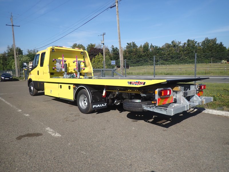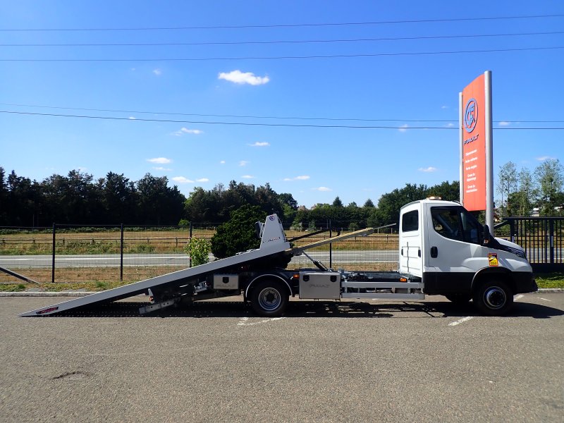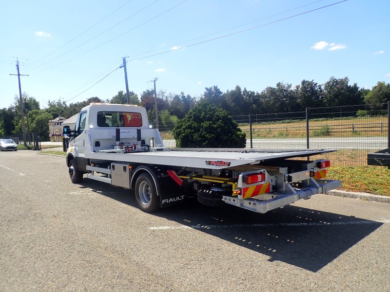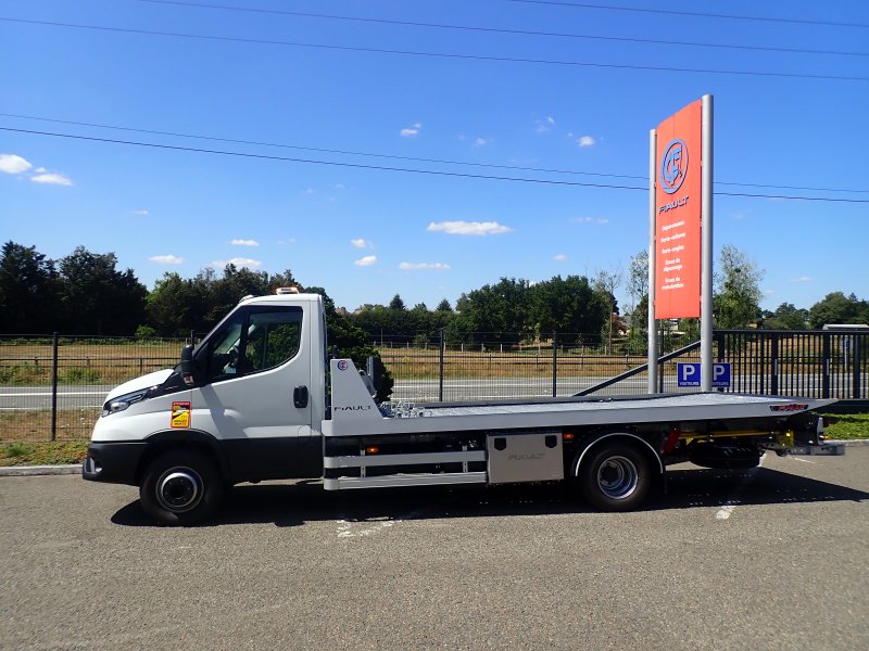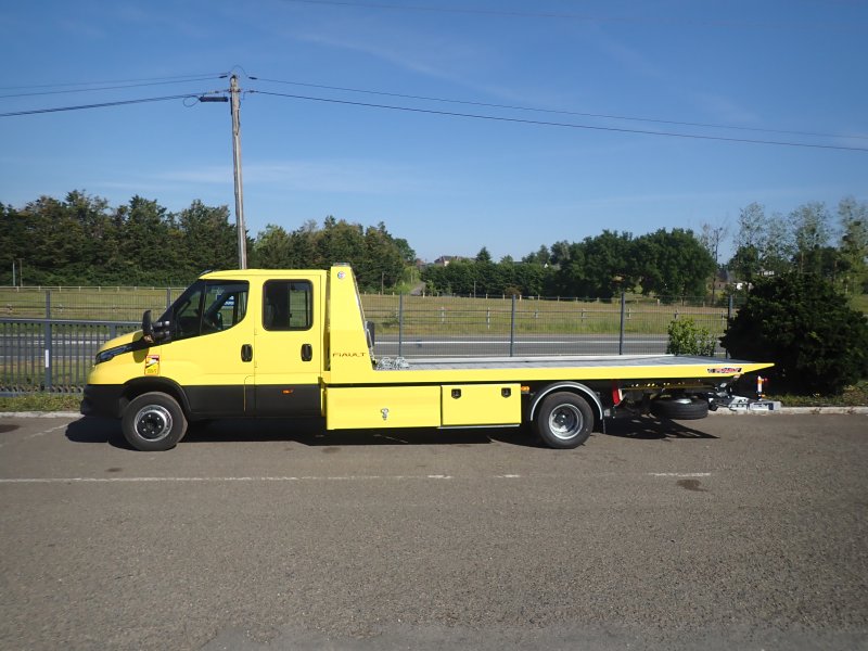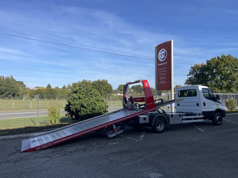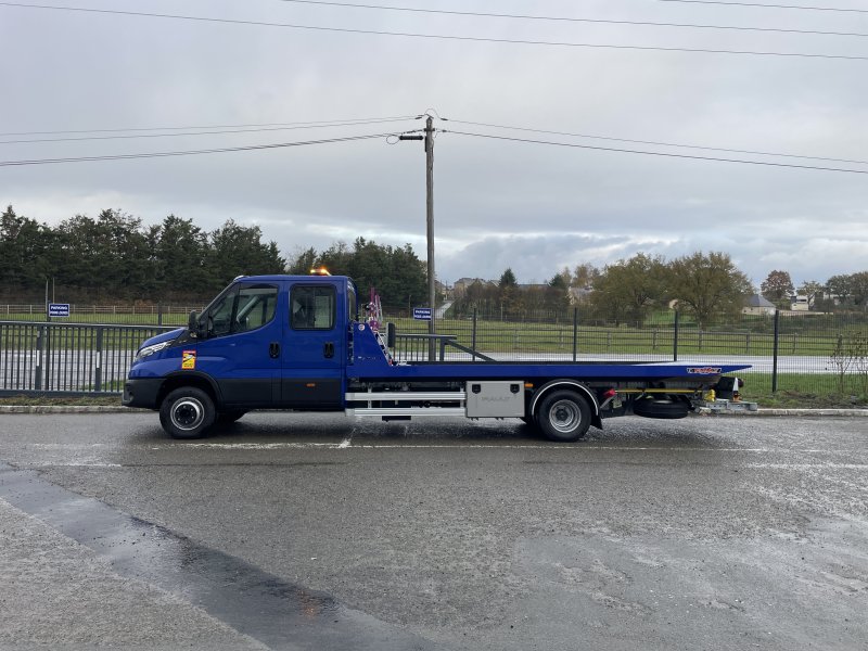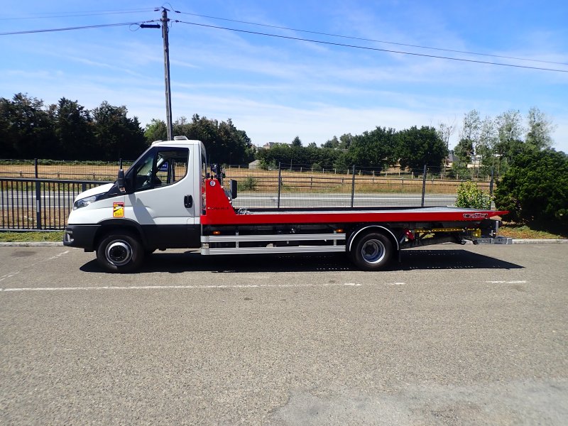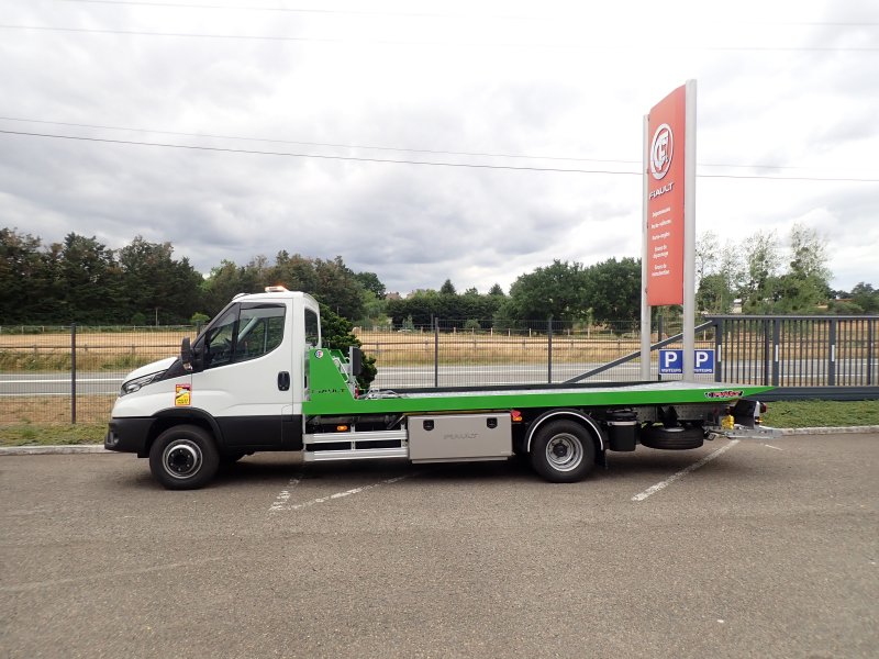 The PLAT'TRANS PF30 steel is a tilting and sliding car transporter designed for chassis cabs from 5 to 8 tonnes. Thanks to its steel construction, it offers greater strength, ideal for transporting heavier vehicles. Equipped with an integrated towing basket, it can carry up to two vehicles simultaneously.