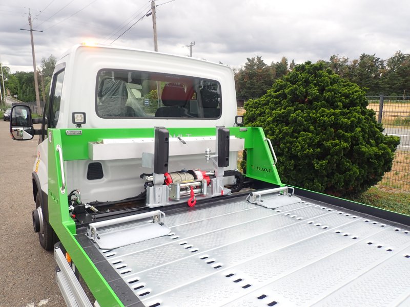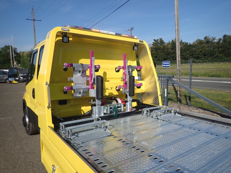 A 3T6 hydraulic winch with 20 m cable diam. 10, cable guide, fitted on the second car carrier SCC with a remote control coupled with the winch of the plateform. An adaptable towing hook on the Second Car Carrier SCC with 2 pins
