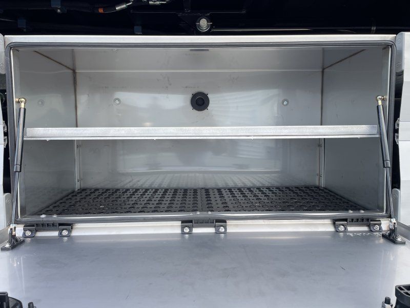 Polyester rear overhang (without wings) with a box for the hydraulic controls at the right rear and a tool box at the left rear