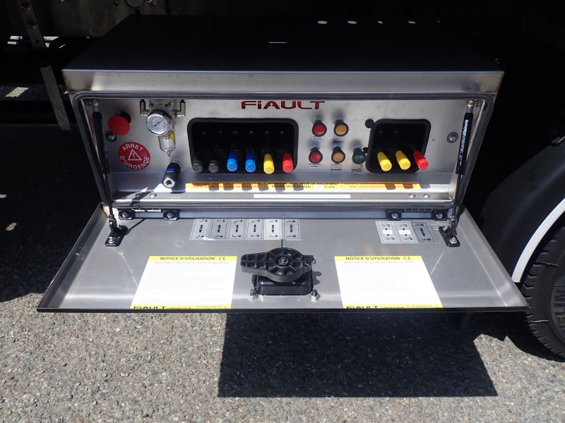 Polyester rear overhang (without wings) with a box for the hydraulic controls at the right rear and a tool box at the left rear with hinged doors (for chassis from 10T to 32T), painted in a standard color (not metallic) same as body