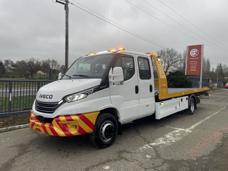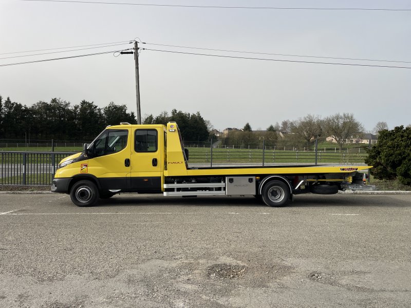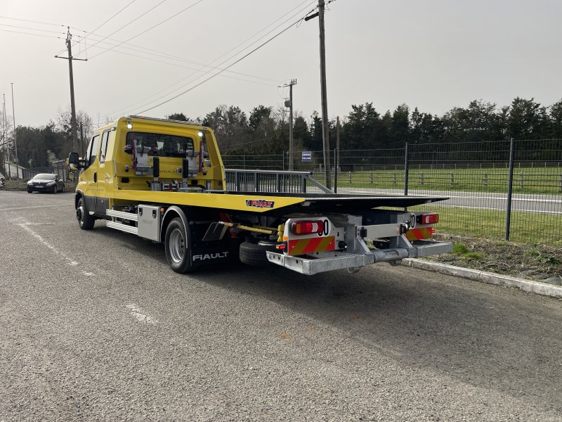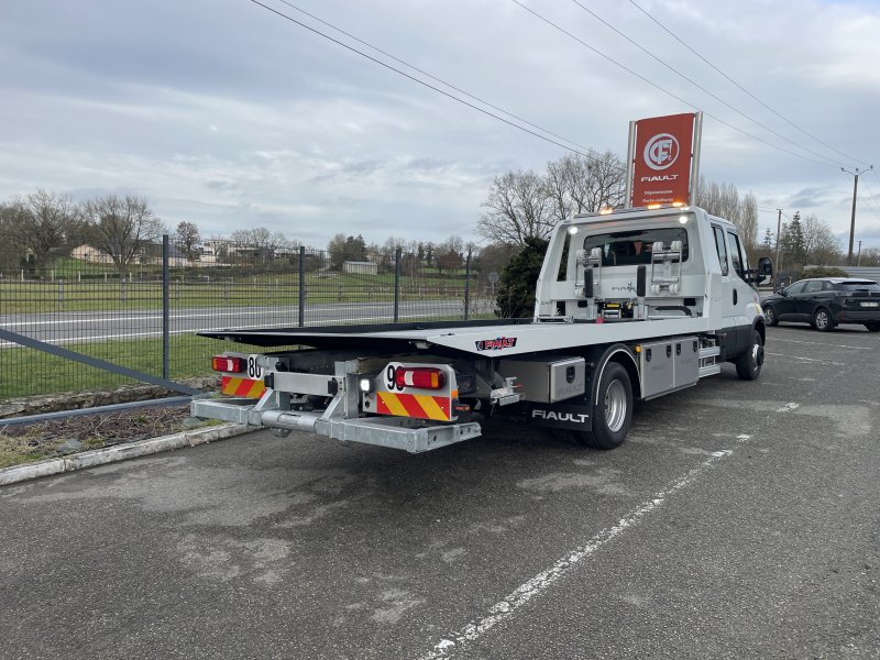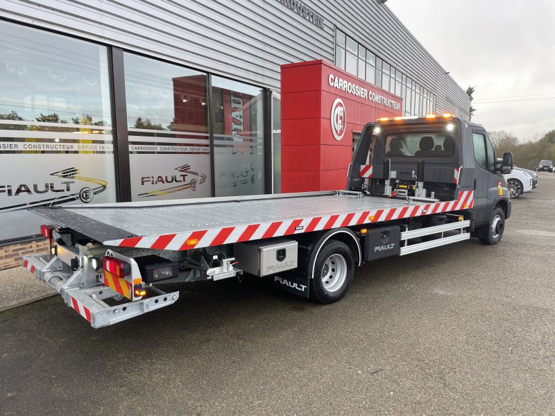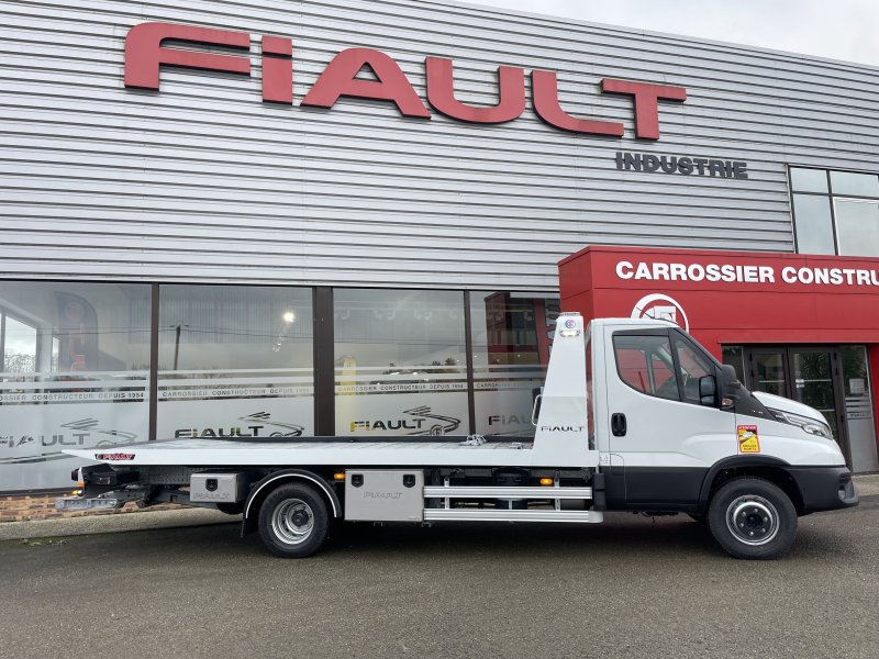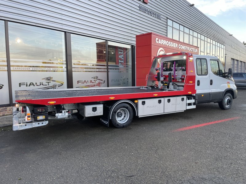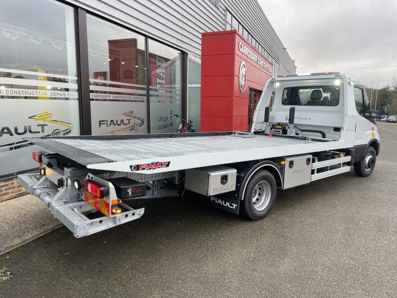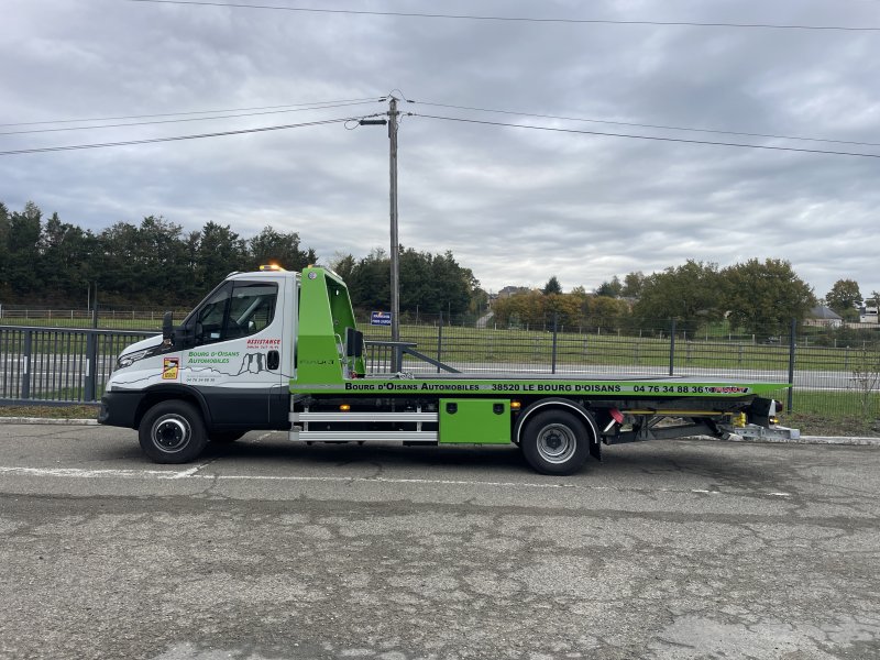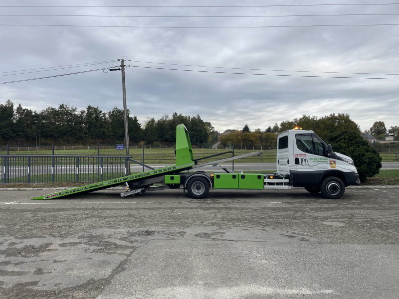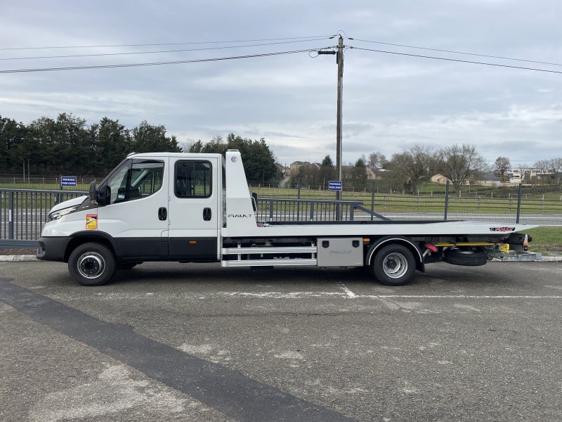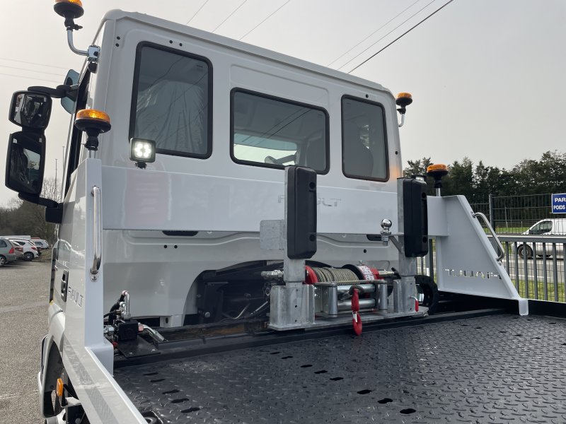 Un treuil hydraulique 3T6 avec 20 m de câble diam. 10, guide câble, installé sur le panier de remorquage avec une commande radio couplée avec le treuil du plateau. Un crochet d'attelage double chape+ boule adaptable sur la traverse du panier avec 2 broches