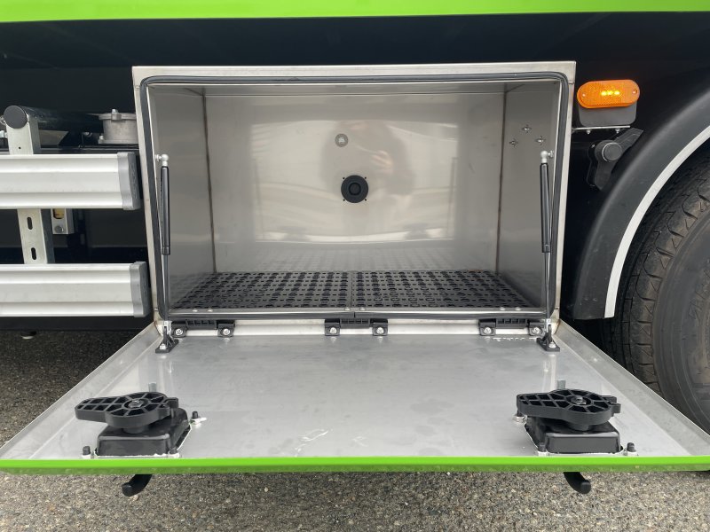 Adaptation d'un bloc de lest anti-cabrage (environ 80 Kg) sous le pare chocs d'origine pour conformité délestage et amélioration de la stabilité en charge (obligatoire sur certains véhicules selon empattement pour PTAC<7,5T avec panier)
