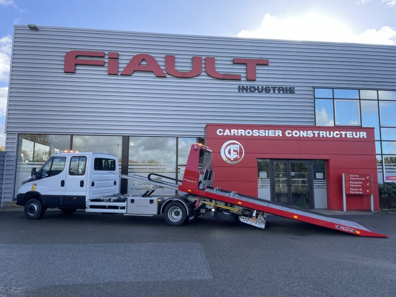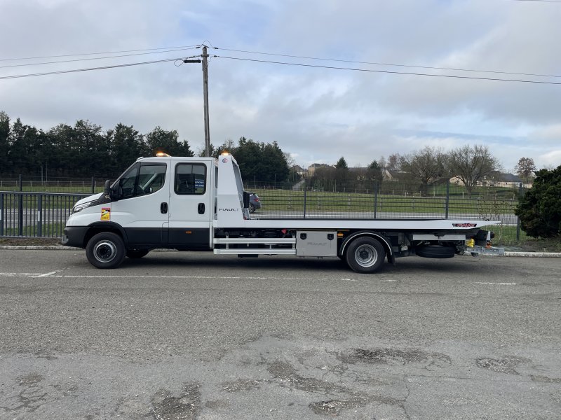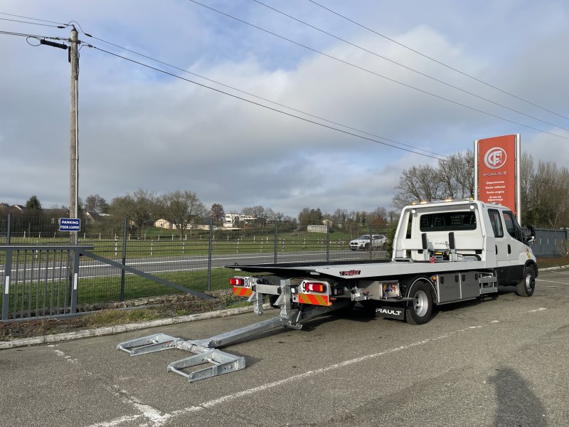 Le PLAT'TRANS PF30 ACIER est un porte-voiture basculant et coulissant, conçu pour les châssis cabine de 5 à 7,5 tonnes de PTAC. Grâce à sa construction en acier, il offre davantage de résistance, idéale pour le transport de véhicules plus lourds. Équipé d'un panier de remorquage intégré, cet équipement permet de transporter jusqu'à deux véhicules simultanément.
