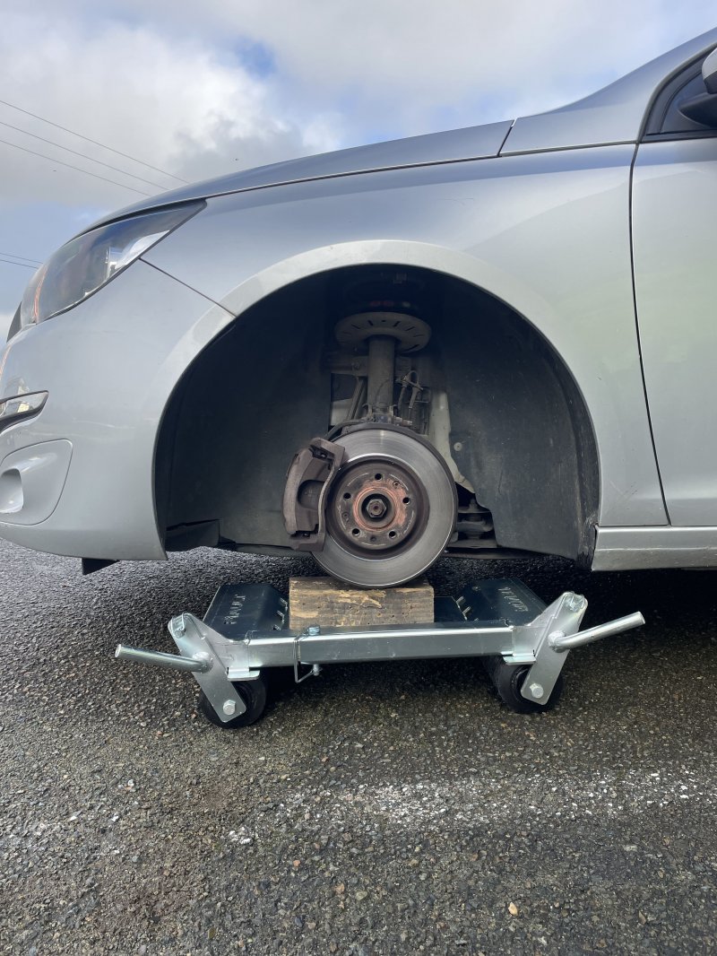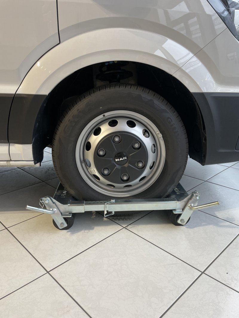 Deux chariots de chargement à roues libres spécial type EASY WHEELS pour les véhicules avec les roues bloquées ou transmissions intégrales avec une barre permettant de soulever le véhicule et une plaque d'appui pour véhicule sans roue (sans support) (vitesse maximale : 5 Km/h) (à positionner dans un coffre à outils de 1000mm non inclus)