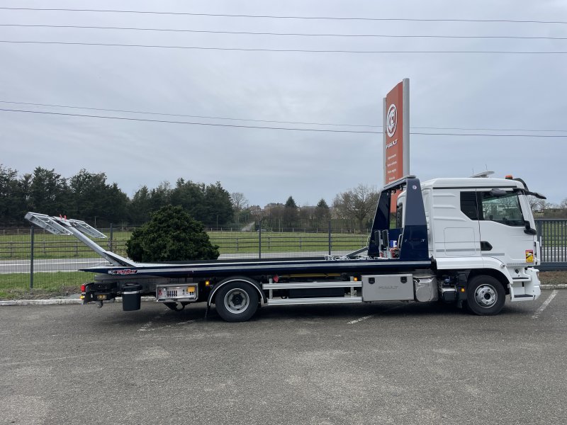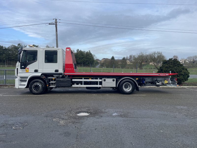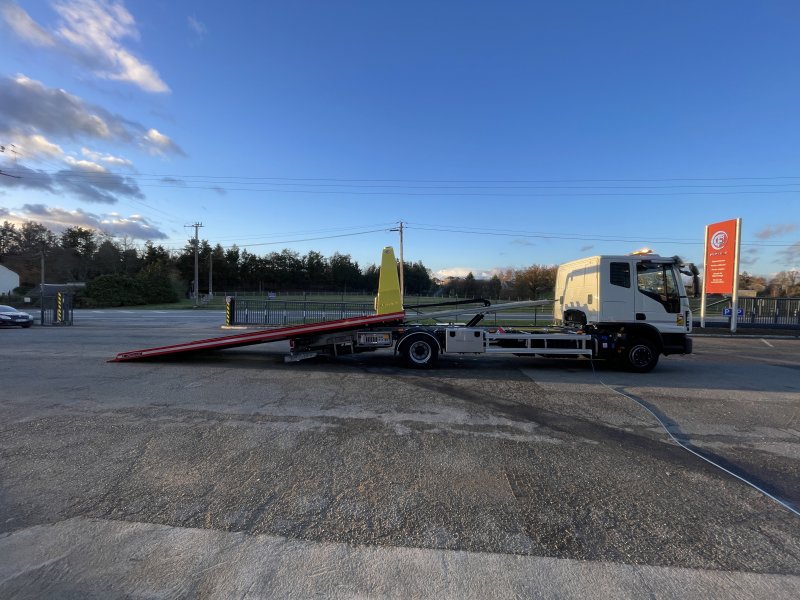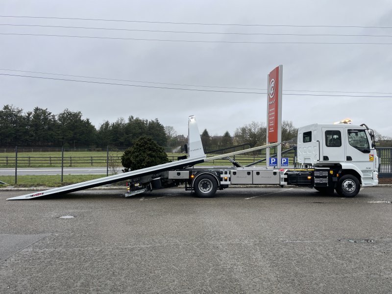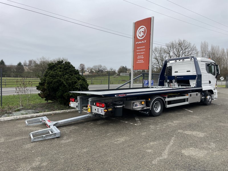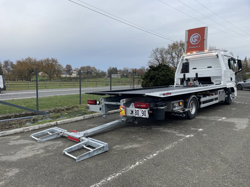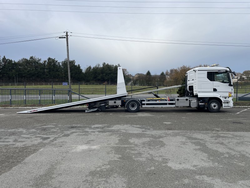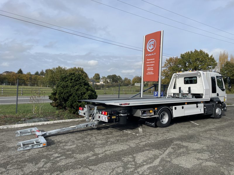 Double extension hydraulique du panier à 1800 mm pour permettre l'utilisation des rampes (PF60-PF65). Suppression de la trappe à l'arrière du plateau. Cette double extension permet également de prendre des véhicules au panier avec un porte à faux avant et arrière très long.