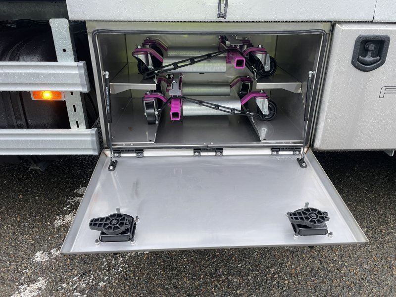-Distributeurs hydrauliques dans un coffre de protection en inox à l’arrière droit avec éclairage