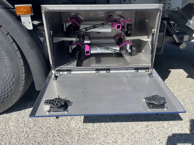 -Distributeurs hydrauliques dans un coffre de protection en inox à l’arrière droit avec éclairage automatique
